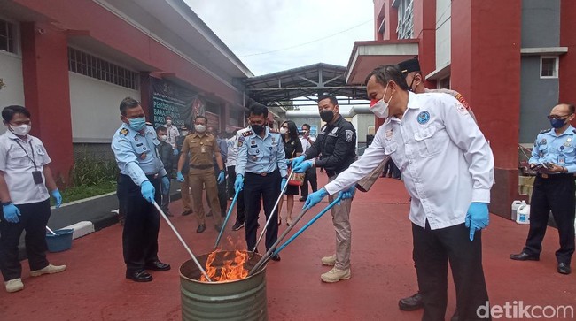 Pemusnahan dilakukan dengan cara memblender sabu-sabu, membakar tembakau hingga memusnahkan ponsel menggunakan air garam.