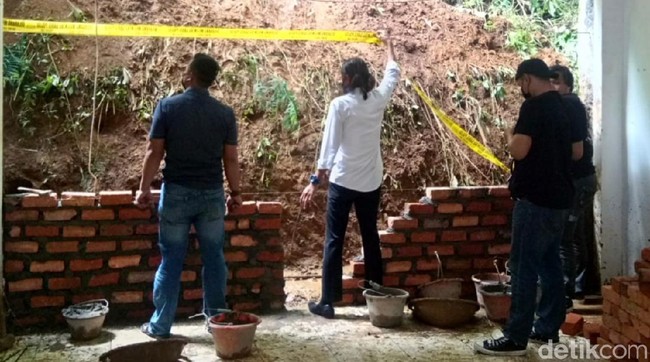 "Dibelakang itu ada tebing tanah, jaraknya jauh ada 3 meteran jauhnya tebing tanah itu. Sepertinya longsor dari atas mendobrak dinding, ketinggian (tebing) ada tinggi sekitar 15 meter, tidak terlalu vertikal, bahkan terhalang pohon," kata Nandang.