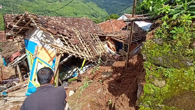 Ketua RW setempat Ahmad Saepuloh menuturkan, longsor terjadi sekira pukul 22.00 WIB. Saat kejadian, tiga penghuni rumah tengah berada di dalam rumah.