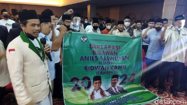 Pengurus Wilayah Gerakan Persaudaraan Muslim Indonesia (PW GPMI) Jawa Barat mendeklarasikan dukungan kepada Anies Baswedan dan Ridwan Kamil untuk maju sebagai pasangan capres-cawapres di Pilpres 2024.
