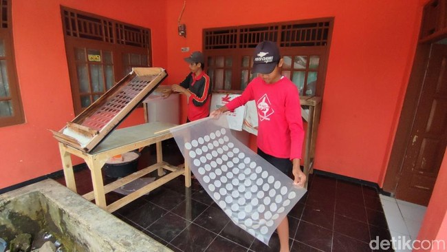 "Supaya lebih cepat kering dan cetakan banyak biasanya yang sudah cukup kering saya gantung. Selain akan kering sempurna juga memudahkan untuk melepas keripik dari plastik," ujar Asep saat ditemui di tempat produksinya Desa Imbanagara Raya, Rabu (1/12/2021).