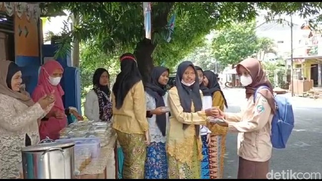 Setelah itu, anak-anak penyandang disabilitas ini langsung bergegas keluar sekolah untuk membagikan makanan buatannya kepada pengguna jalan.