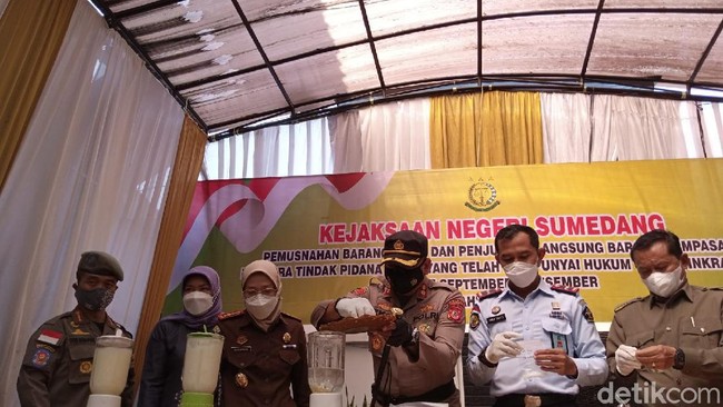 Barang haram tersebut dimusnahkan dengan cara dilarutkan menggunakan blender di depan kantor Kejari Sumedang yang disaksikan oleh Kapolres Sumedang, Kalapas Kelas IIB Sumedang dan perwakilan dari Pemda Sumedang.