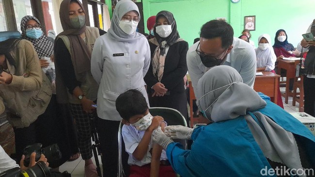 "Alhamdulillah kita kick off vaksin untuk anak usia 6-11 tahun, mulai hari ini. Berdasarkan data ada 100.862 anak (yang jadi target vaksinasi). Ditargetkan 15 Januari 2022 selesai dosis pertama dan 12 Februari full dosis atau dosis kedua," kata Wali Kota Bogor Bima Arya Sugiarto di SD Negeri Kaum Luwuk Kota Bogor, Rabu (15/12/2021).