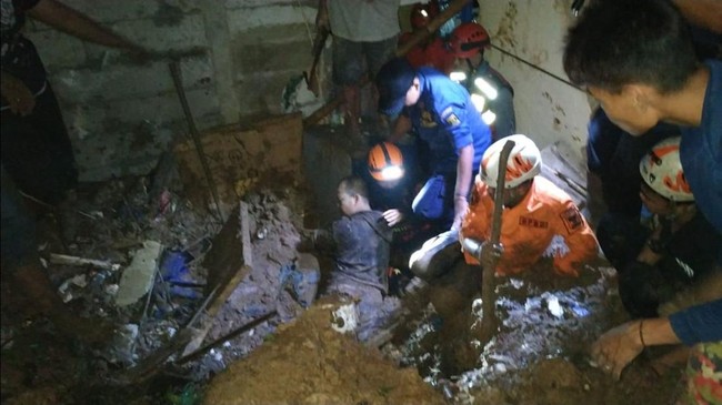 "Evakuasi kurang lebih 1 jam, kondisi korban alhamdulillah selamat. Kami menemukan kesulitan karena medan longsor di ruangan dapur, ruangan itu sempit ditambah banyaknya material longsor ditambah lokasi sumber air rawan mengikis tanah. Untuk evakuasi kita lakukan secara manual," jelas Yogi.