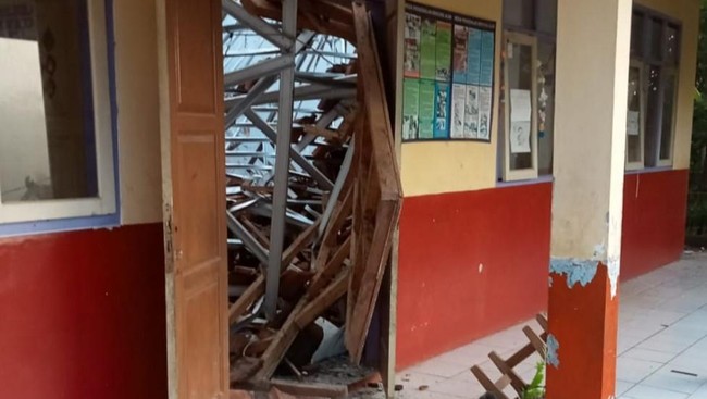 "Baru hari ini kami mengecek ke lokasi kejadian. Ternyata benar bagian atap satu ruang kelas ambruk. Gentengnya hancur, terbuat dari baja ringan," ujar Aan, Senin (27/12/2021) saat dihubungi.