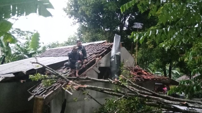 "Jadi pohon tumbang itu menimpa atap masjid dan rumah, sehingga itu yang mengalami rusak berat, sisanya hanya bagian atapnya saja berterbangan," kata Asep.