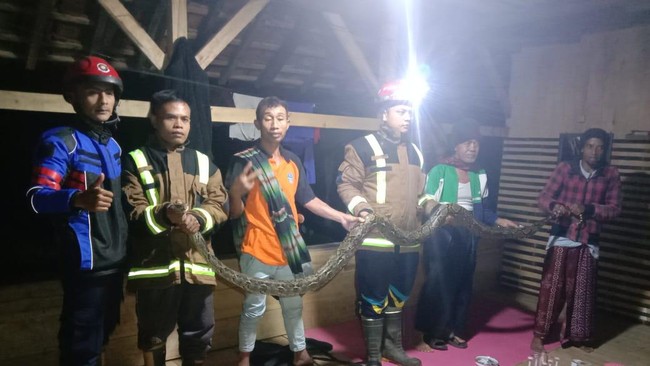 "Saat diamankan itu posisinya masuk ke kandang bebek. Ada satu bebek yang terlihat sudah dililit ular ini," tutup Hendra.