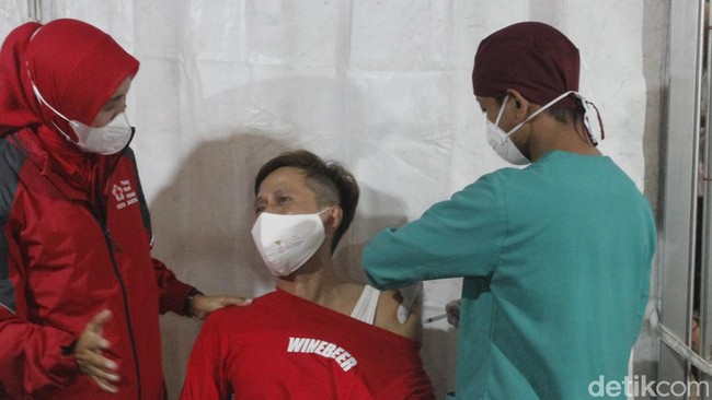 Awalnya ia sempat ragu untuk mengikuti vaksinasi yang berada di tempat keramaian tersebut. Namun, istrinya meyakinkan dirinya untuk ikut juga dalam penyuntikan vaksin Sinovac itu.