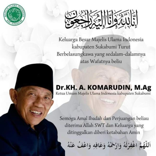 Ketua Majelis Ulama Indonesia (MUI) Kabupaten Sukabumi A. Komarudin tutup usia. Pria yang dikenal dengan Oman Komarudi ini meninggal pada Rabu (5/1/2022), sekitar pukul 01.50 WIB.