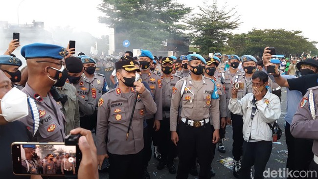 Kapolres terus meminta massa untuk membubarkan diri dan pulang ke rumah masing-masing. Ia bahkan menghitung mundur agar massa cepat menaiki kendaraan masing-masing.