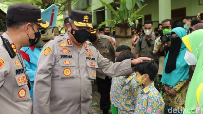 Kapolda Jawa Barat Irjen Pol Suntana memantau vaksinasi anak di SD IT Cendekia Insani Kecamatan Palabuhanratu, Kabupaten Sukabumi. Pada kesempatan itu, Suntana memaparkan pencapaian vaksinasi di Kabupaten Sukabumi.