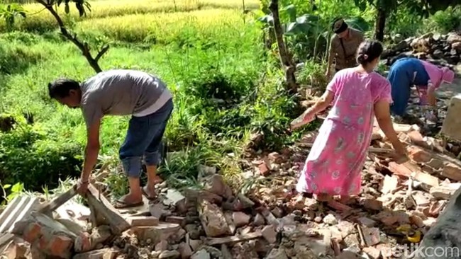 Sebagaimana dilakukan Irma, warga Desa Sumberjaya, Kecamatan Sumur, Pandeglang. Ia beserta suami dan dibantu tetangganya membersihkan puing-puing bangunan yang rusak setelah diguncang gempa Banten Jumat (14/1) kemarin.