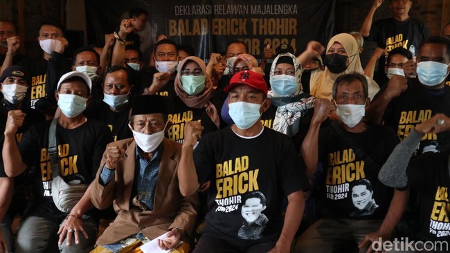 Sejumlah relawan di Kabupaten Majalengka mendukung Erick Thohir maju sebagai Capres 2024. Para relawan ini tergabung dalam 'Balad Erick Thohir'.