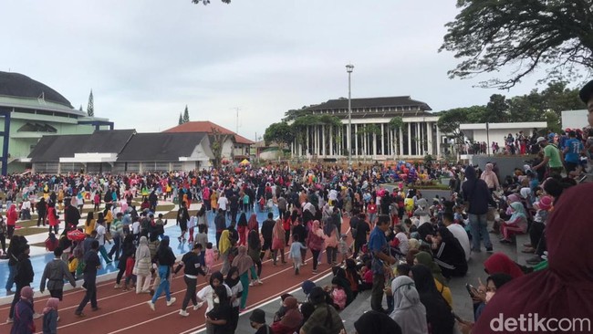 Hal serupa juga yang dilakukan Hendra (58) yang ingin berjalan santai di lapang ini bersama cucunya. Namun dia menyayangkan, banyaknya warga yang datang.