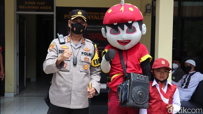 Berbagai upaya dilakukan Polres Sukabumi untuk menggenjot angka capaian vaksinasi anak. Caranya mendatangkan badut hingga menyebar mainan agar anak-anak usia sekolah dasar mau disuntik vaksin.