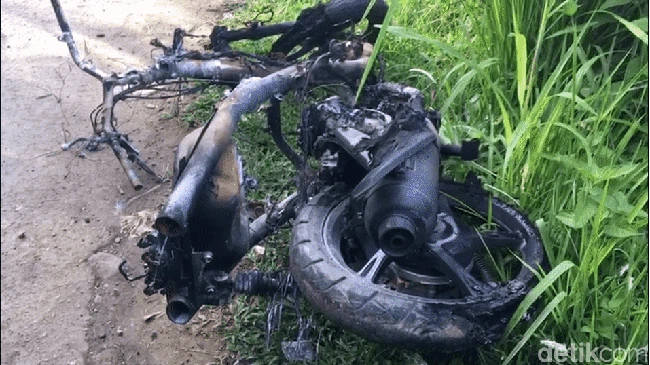 "Kalau menurut orang sini, ciri-cirinya dikenali. Motor itu tidak hidup lalu dibakar sama maling. Kejadian (pencurian) bukan pertama kali, hari ini kebetulan kejadiannya motor tidak bisa dibawa lalu dibakar," kata Ade Sopian, perangkat desa setempat.