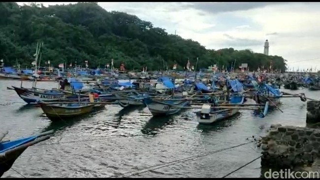 Dampak dari tidak melautnya para nelayan, ratusan kapal pencari ikan menumpuk di dermaga Pantai Santolo.
