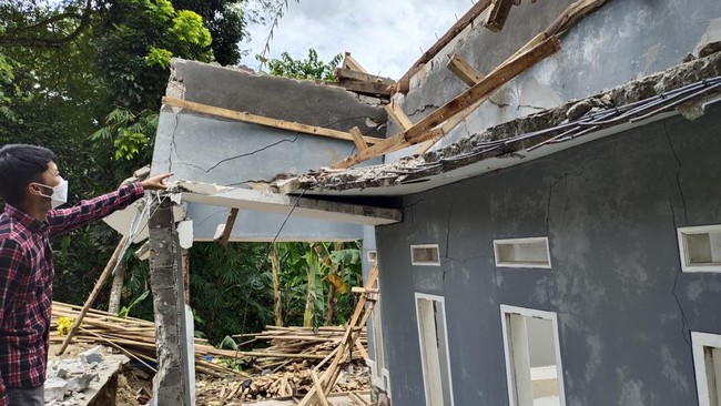 "Perlahan-lahan, ada suara 'trek-trek-trek' langsung pada keluar (anak-istri). Terasa (gerakan tanah) tapi enggak kencang pelan-pelan," ujar Karman salah satu pemilik rumah, kepada awak media di lokasi, Kamis (27/1/2022).