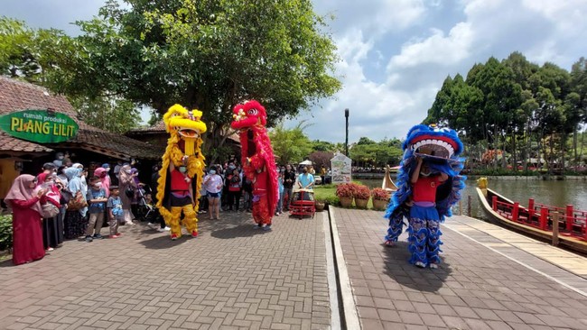 Tak hanya bisa menikmati wahana wisata di Floating Market, pada momen perayaan Imlek tahun 2022 ini wisatawan dimanjakan dengan suguhan atraksi barongsai yang sudah jadi tradisi di kalangan masyarakat.