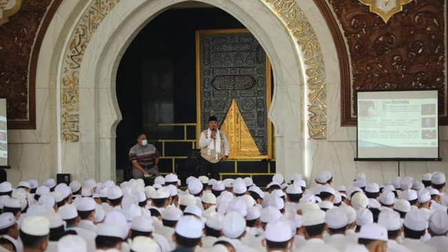 Tim Tabligh Polres Tasikmalaya Kota memberikan pembinaan dan penyuluhan di Mesjid Al Fattah Pesantren Idrisiyyah Pagendingan, Desa Jatihurip, Kecamatan Cisayong, Kabupaten Tasikmalaya, Selasa (8/2/2022).