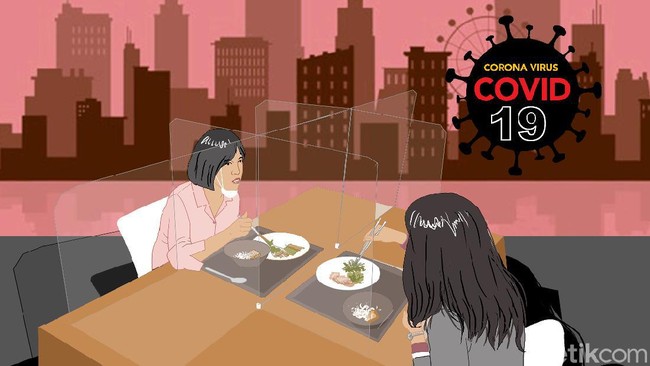 Rumah makan dan kafe yang berada di area terbuka maupun di dalam gedung diizinkan untuk menerima dine-in atau makan di tempat. Maksimalnya 60 persen. Maksimal satu mejanya hanya diisi dua orang. Waktu makannya dibatasi hanya 60 menit.
