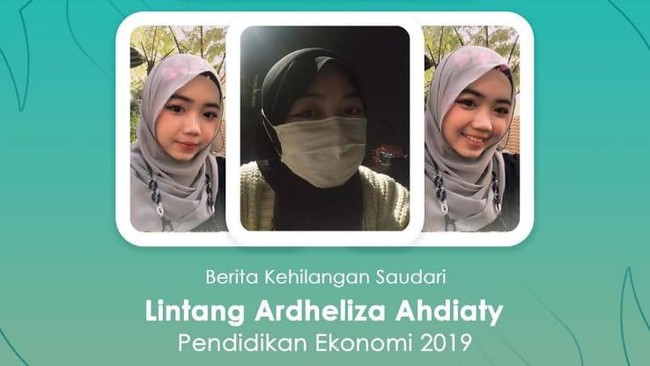 Lintang Ardheliza Ahdiaty mahasiswi Universitas Pendidikan Indonesia (UPI) dikabarkan hilang. Sudah dua pekan berlalu, Lintang tak ditemukan oleh keluarga.
