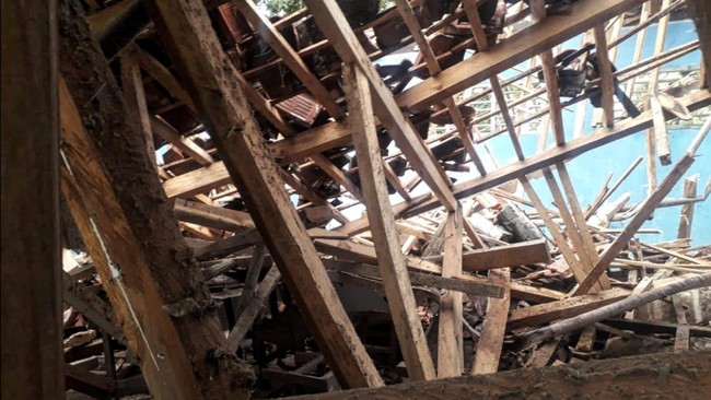 Dua bangunan kelas SDN Puncak Malanding di Kecamatan Tegalbuleud, Kabupaten Sukabumi ambruk pasca diterjang angin kencang yang melanda kawasan tersebut pada Sabtu (12/2) kemarin.