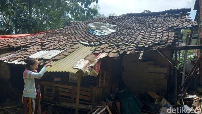 "Ya, kemarin atap rumahnya ambruk karena kayu penyangganya sudah pada lapuk. Beruntung, enggak ada korban," ungkap Imas yang didampingi anaknya, Minggu (13/2/2022).