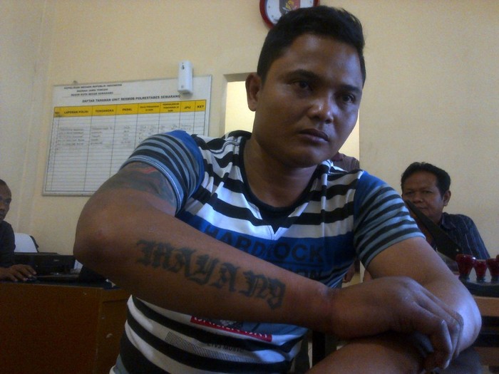 Saat ditanya siapa nama yang tertulis ditangannya, jawaban yang tidak disangka keluar dari mulutnya. "Iya ini nama Mayang yang dimutilasi, saya pernah pacaran sama dia," ujarnya sambil menunduk.