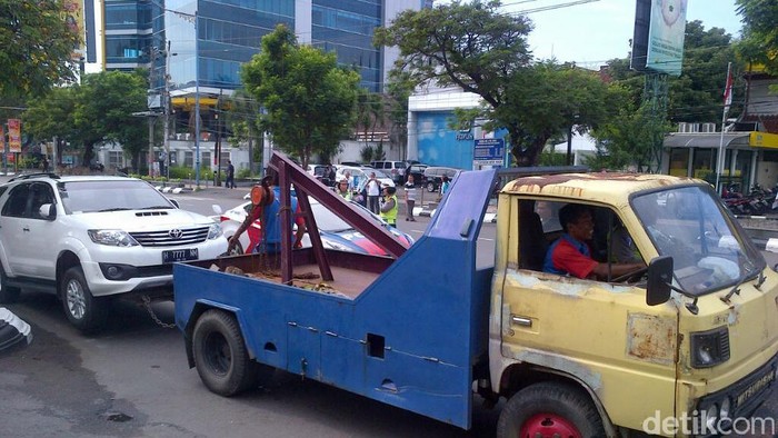 Dari pantauan detikcom, Rabu (17/2/2016), pukul 09.00 WIB, ada dua mobil yaitu Avanza Hitam K 8685 VA danย Fortuner putih H 777 NM yang diangkut. Keduanya parkir di depan Hotel Santika Premiere. Personil Sat Lantas Polrestabes Semarang sudah berusaha melakukan pemberitahuan tapi tidak diindahkan.