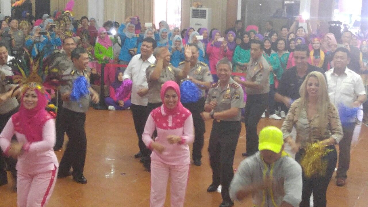 Para istri-istri polisi itu dengan kompak bersenam Maumere dengan kreasi mereka serta kostum yang memperlihatkan ciri khas daerah masing-masing. Condro pun terlihat menikmati dan sesekali ikut bergoyang.