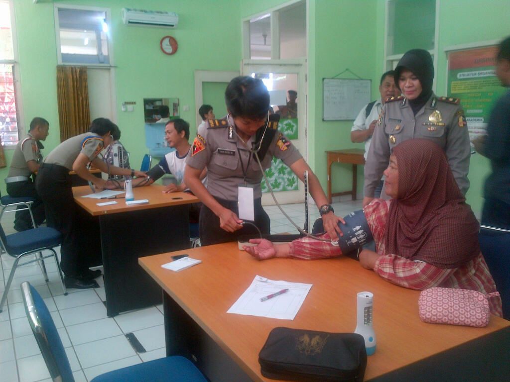Pasien masuk ke ruangan dan diperiksa tekanan darah dan dicatat keluhan-keluhannya. Dokter dari kepolisian itu kemudian memberikan saran dan rekomendasi jika penyakitnya ringan. Pengobatan pun dilakukan kepada warga yang butuh obat.