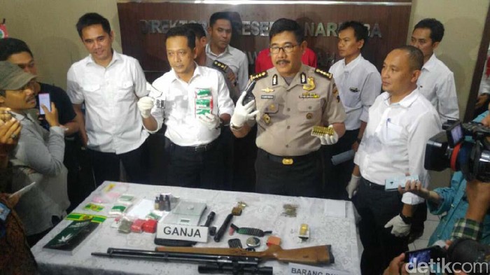 Dalam penangkapan terhadap pelaku, polisi mengamankan 8 paket ganja yang terdiri dari 5 paket diselotip warna merah dan 3 paket dalam plastik klip, kemudian ada botol berisi ekstrak ganja atau cairan tincture, serta buku berjudul Hikayat Pohon Ganja.