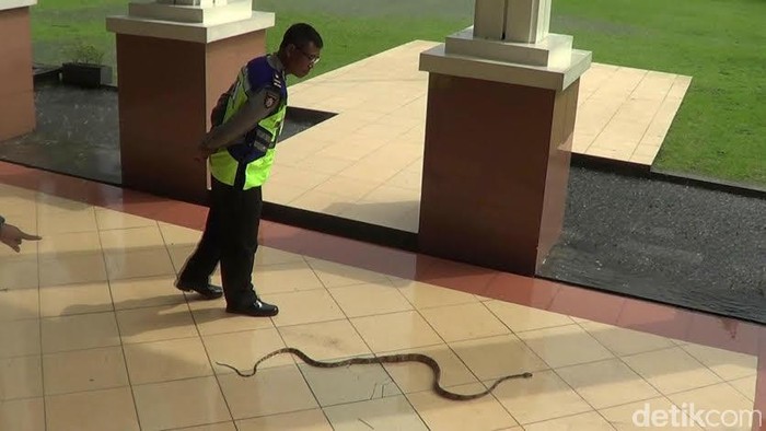 Sehingga akhirnya salah seorang polisi membunuh ular tersebut dengan sebatang kayu.