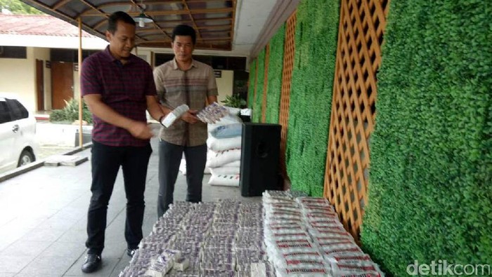 Berbagai barang bukti disita antara lain 890 bungkus garam cetak merek Bandeng, 100 bungkus garam cetak merek Bintang Super, 290 bungkus garam cetak merek Tiga Kerang Emas, 1 sak garam grosok, 1 sak garam yang sudah dicampur iodium, 1 sak garam cetak ukuran kecil, dan lainnya. Pelaku menjual per bungkus berisi 12 garam cetak dijual dari Rp 1.450 sampai Rp2.700.