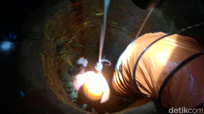 Tim SAR yang mendapat laporan tersebut segera datang ke lokasi dan memasang alat evakuasi. Proses evakuasi berjalan sekitar 1 jam dan kemudian jenazah korban diangkat dari sumur sedalam 15 meter itu. Kambingnya pun tidak terselamatkan.