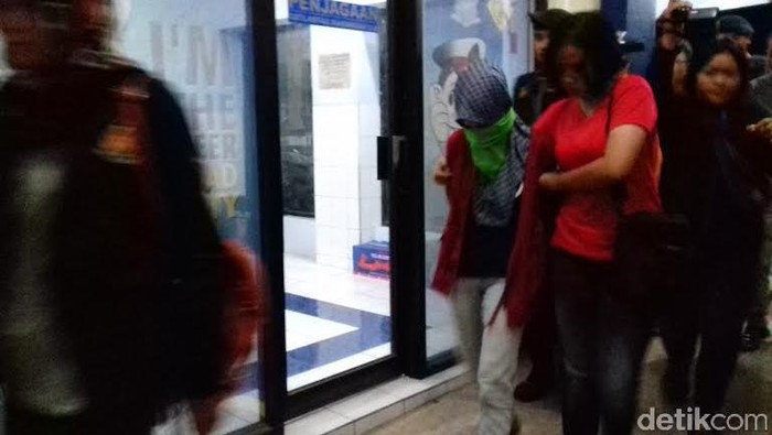 Tiba di lokasi, ketiga tersangka langsung digelandang masuk menuju ruangan penyidik Satreskrim Polres Karanganyar. Mereka mengenakan penutup muka atau sebo.