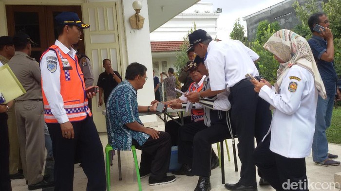 Beberapa sopir taksi argometer sempat memantau jalannya razia yang berlangsung di halaman DPRD DIY di Jl Malioboro. Ada beberapa mobil taksi online yang terjaring razia itu.