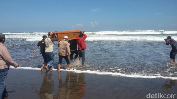 Puluhan warga yang menamakan diri Paguyuban Rakyat Yogyakarta Istimewa terlibat dalam prosesi tersebut. Mereka melarung peti jenazah ke laut Parangkusumo, Minggu(16/7/2017).