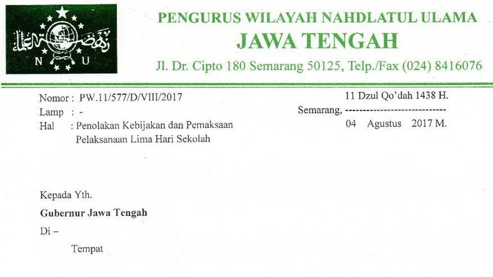 Untuk diketahui, selain menyurati Gubernur, PWNU Jateng, PWNU Jateng juga mengeluarkan surat berisi instruksi kepada pimpinan cabang NU di Jateng untuk menyampaikan sikap tegas penolakan tersebut.
