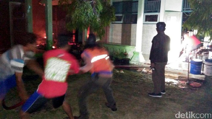 Api mulai muncul sekitar pukul 00.30 WIB. Penjaga sekolah, Ramlan, dalam keterangannya kepada polisi, mengaku melihat api pertama kali muncul di kantin. Kemudian dia memberitahu salah seorang guru yang rumahnya tak jauh dari lokasi.