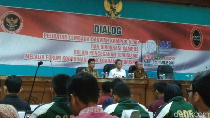 Hal ini disampaikan Hamli dalam dialog Pelibatan Lembaga Dakwah Kampus (LDK) dan Birokrasi Kampus dalam Pencegahan Terorisme Melalui Forum Koordinasi Pencegahan Terorisme (FKPT). Dialog digelar di Universitas Sebelas Maret (UNS) Surakarta, Rabu (13/9/2017).