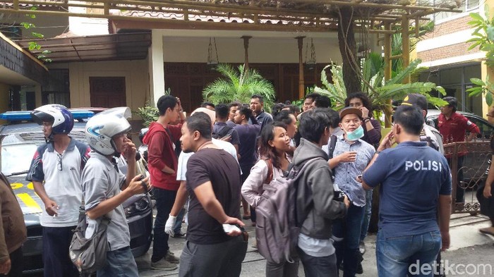 Warga sekitar maupun yang satu kos dengan korban berkumpul di TKP. Korban yang berasal dari Lamongan, Jawa Timur ini baru menghuni kos tersebut 1 selama satu minggu.