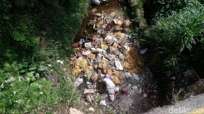Berdasarkan pengamatan detikcom, Jumat (27/10/2017) pagi, sungai dengan lebar sekitar 10 meter tersebut dipenuhi sampah. Mulai sampah rumah tangga, sayur-sayuran, keranjang hingga material bangunan.