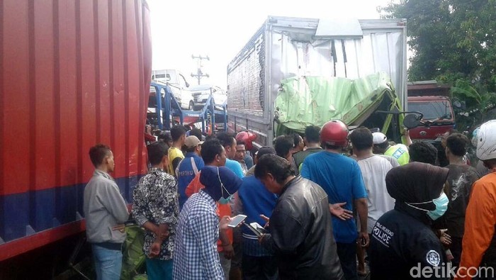 Dari informasi yang dihimpun, kecelakaan terjadi sekira pukul 05.00 WIB. Kecelakaan bermula dari truk bernopol B 9933 JO datang dari arah timur mendahului kendaraan lain, namun dari arah berlawanan terdapat truk D 8321 FY. Kecelakaan antara kedua kendaraan itu tak terelakkan.