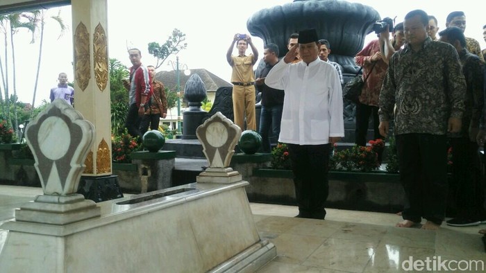 "Ya habis itu (acara di SD Budi Mulia Dua), saya sempatkan juga untuk nyekar di (Makam Raja-raja Mataram) Imogiri, ke (Makam Raja-raja Mataram) Kotagede, dan hari ini mampir ke (makan) Pak Dirman dan juga Menteri Soepeno," kata Prabowo sesuai berziarah ke TMP Kusumanegara. (sip/sip)