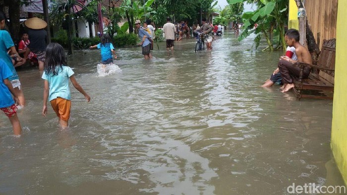 Selain itu, anak anak juga tidak masuk sekolah karena sekolah juga kebanjiran. Banyak anak-anak memilih bermain air banjir.