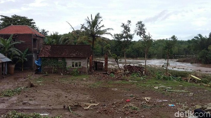 "Dapur, kamar belakang, kamar mandi, alat-alat rumah tangga, almari, kasur dan barang-barang lainnya hanyut terbawa luapan kali," kata istri Sariyanto, Wiji Lestari kepada wartawan, Rabu (29/11/2017).