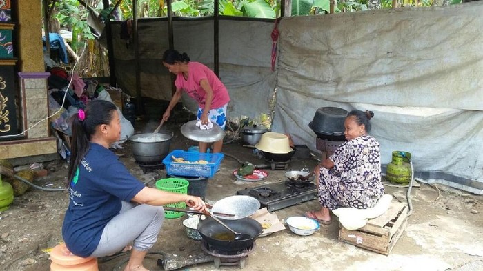 Oleh sebab itu, kata Badingatun, warga ketiga RT di Dusun Dogongan memutuskan mendirikan dapur umum. Di dapur umum inilah tiap harinya diolah berbagai makanan untuk mencukupi kebutuhan ratusan warga.